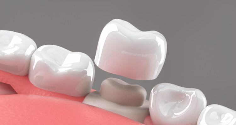 A crown covers the entire tooth right up to the gum line, so you can’t see any of the natural tooth structure.