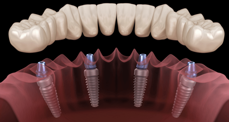 “Teeth in a day” can be used to replace multiple missing teeth.